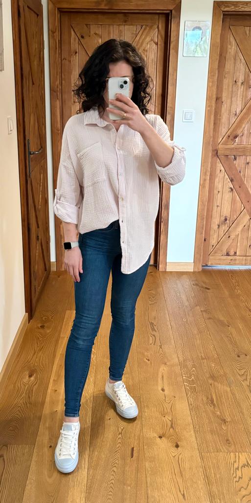 Koszula muślinowa to świetna opcja na wiosnę i lato, delikatny i przewiewny materiał sprawdzi się w ciepłe dni. Można ją nosić na kilka sposób, dobierając do stylizacji. Model jest zapinany na guziki. Dostępny w kilku wariantach kolorystycznych.