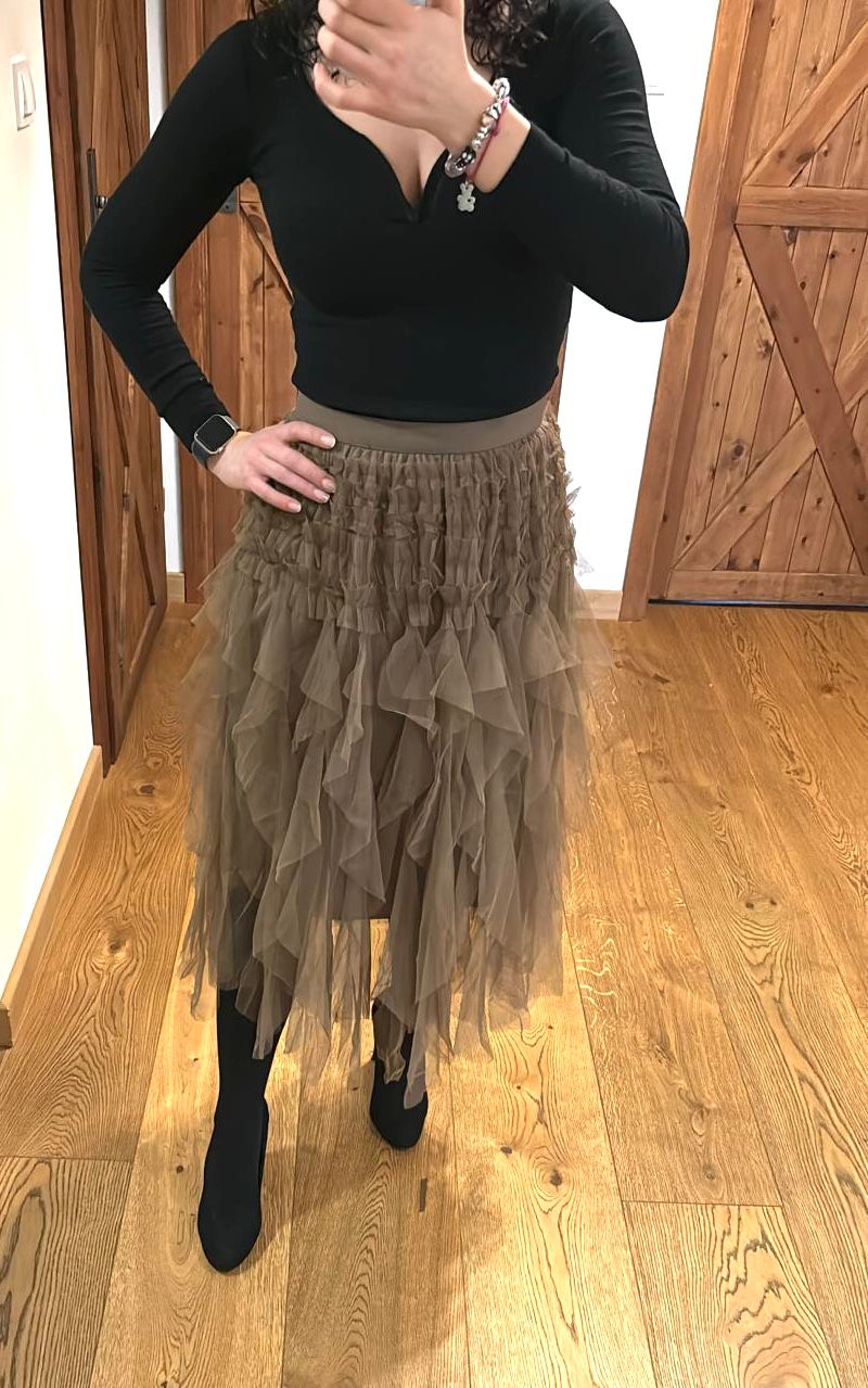 Spódnica Lora to spódnica tiulowa w szalonym wydaniu. Posiada warstwy lekkiego tiulu. Gumka w pasie, zapewnia komfort noszenia oraz ładnie dopasowuje się do sylwetki. Model posiada również podszewkę.